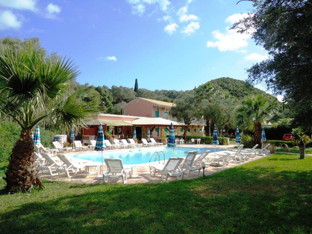 Adjoining the studios is a swimming pool, patio area with sun loungers, sun umbrellas, snack bar and bar with TV.